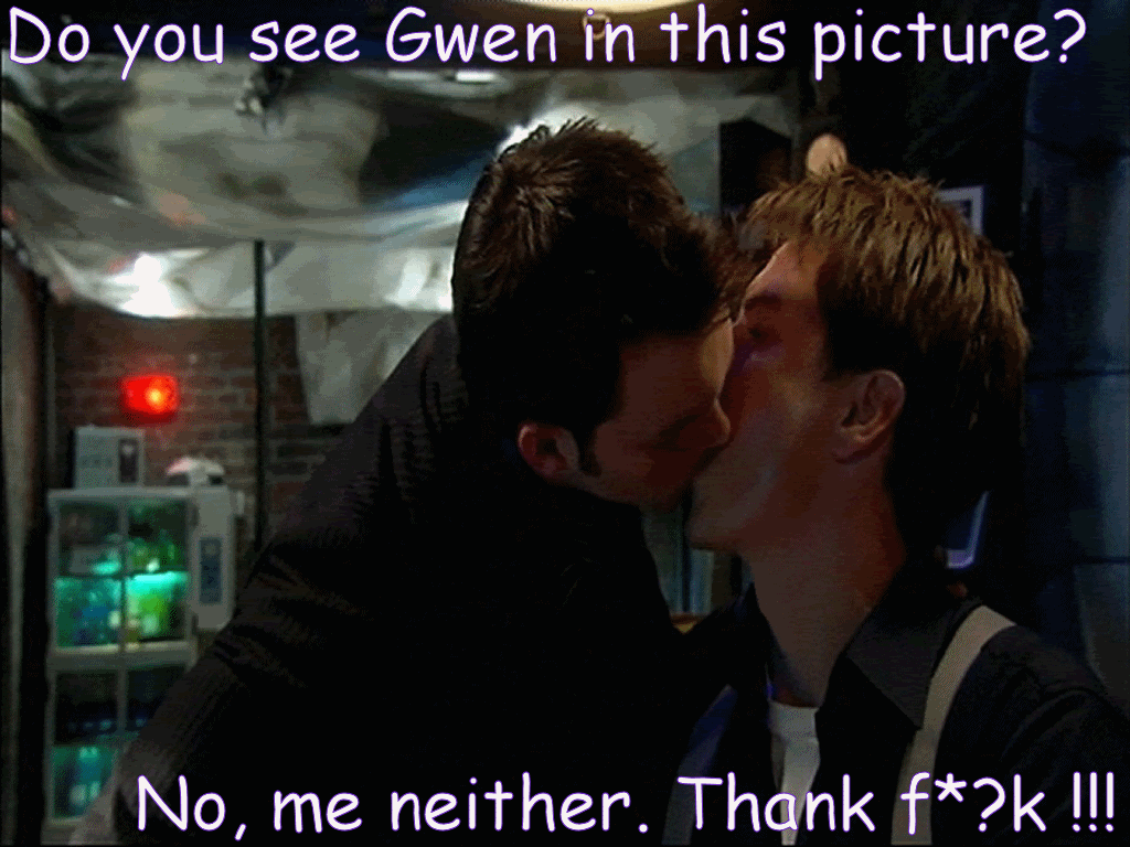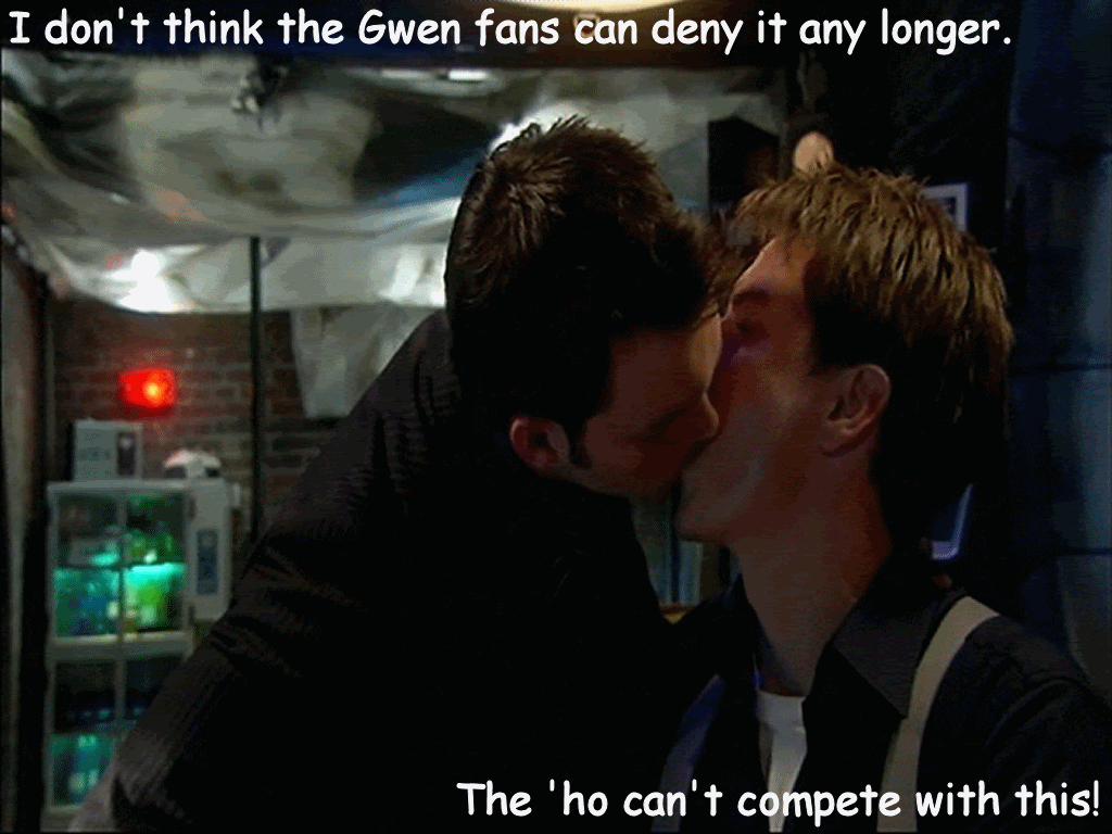 I was just watching KKBB again (kiddie cut repeat *rolls eyes*) Is it just me, or did Gwen seem to be waiting for Jack to beg her not to marry Rhys in the engagement ring scene? She is such a tramp!